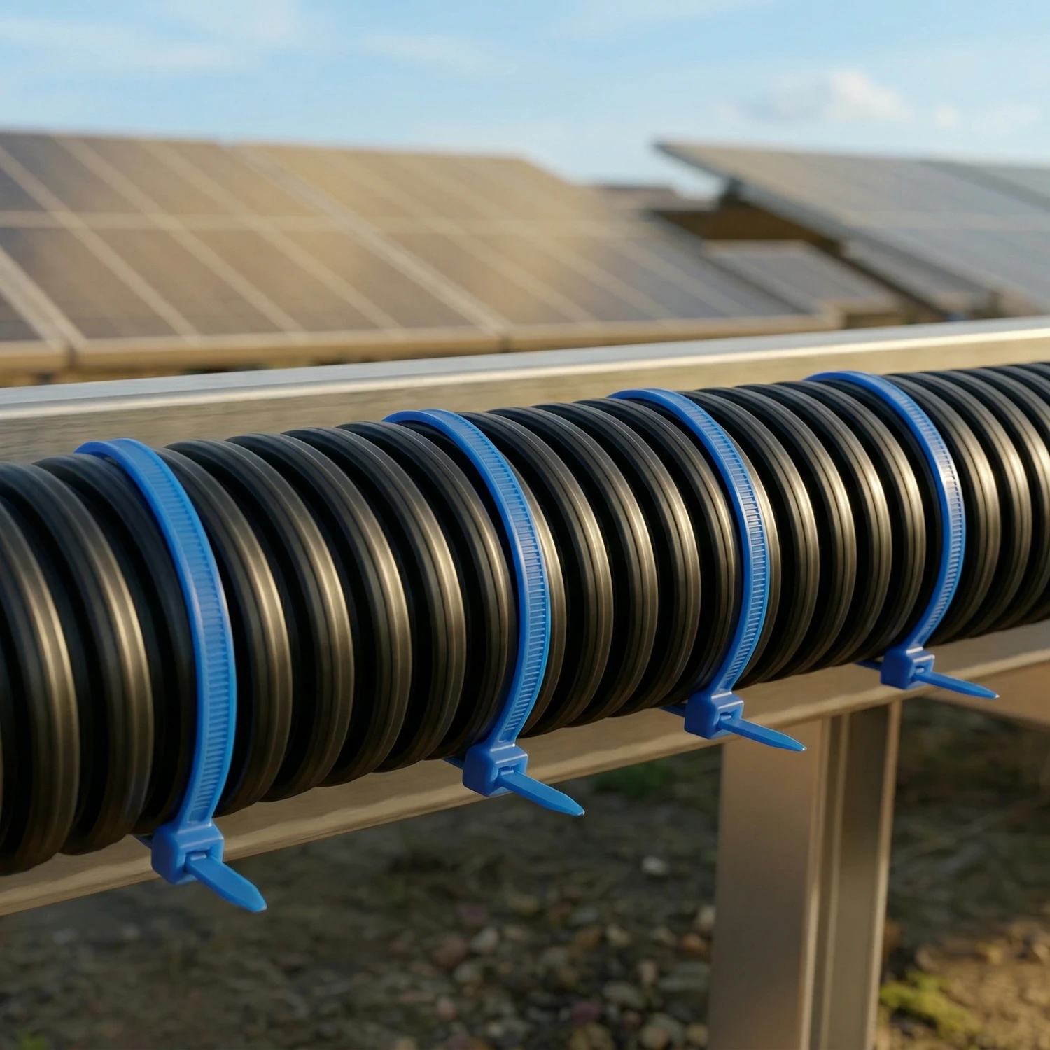 ETFE Kabelbinder eignen sich besonders für Solarinstallationen und alle technischen Aussenanwendungen, in denen Standardkabelbinder durch UV-Strahlung und Wetter frühzeitig altern können. Sie bieten eine robuste, langlebige Befestigungslösung, wenn langfristige Zuverlässigkeit und saubere Installation im Vordergrund stehen.