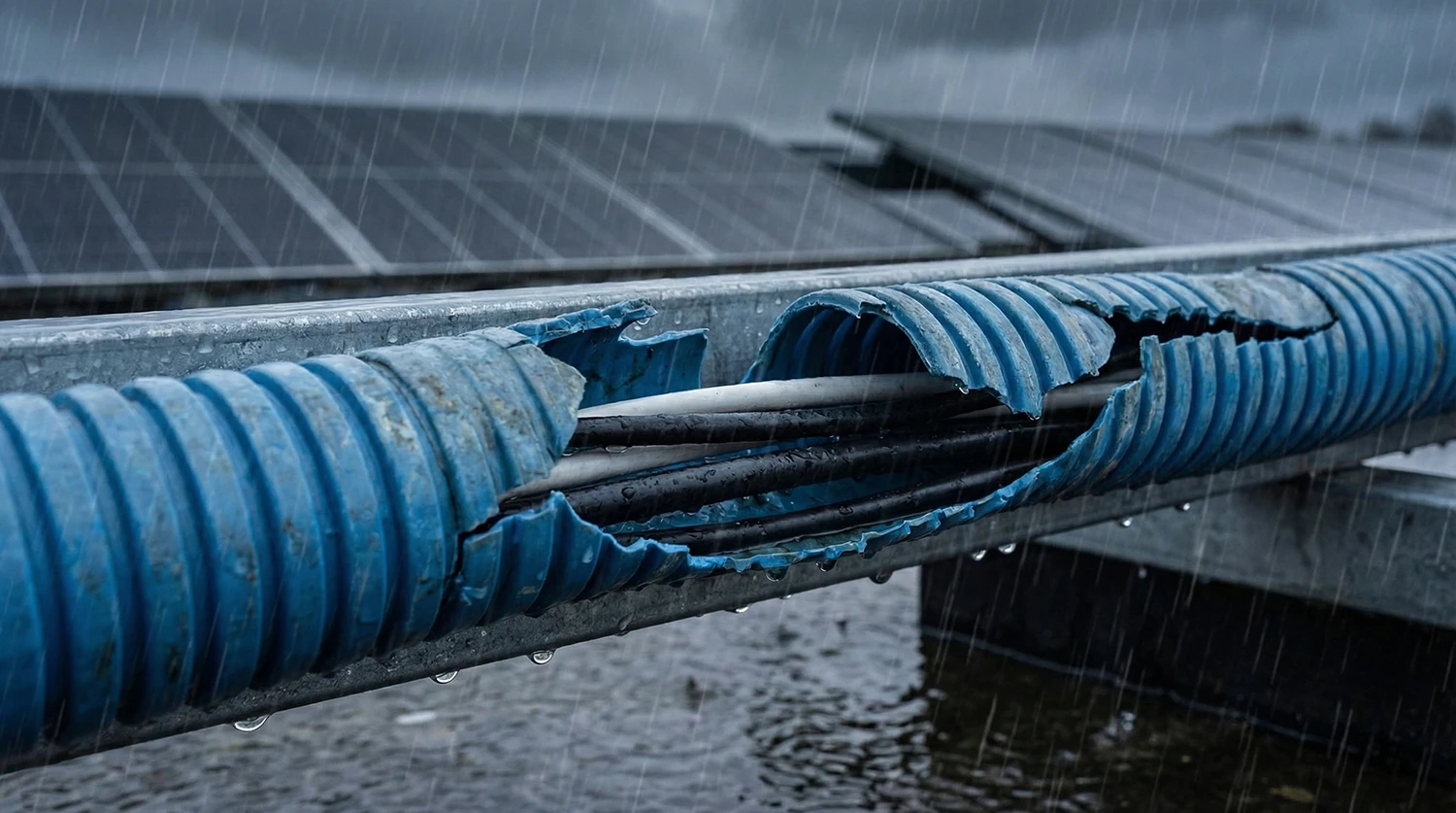 PVDF Flex ist für langfristige Außenbelastung ausgelegt, während viele PP/PVC-Lösungen unter UV-Strahlung und Witterung schneller altern. Typische Folgen bei Standardmaterialien sind Ausbleichen, Versprödung und Rissbildung, was häufig zu vorzeitigem Austausch und Folgekosten führt. PVDF Flex zielt darauf ab, diese Schwachstellen zu vermeiden und eine dauerhaft zuverlässige Schutzlösung für Kabel und Leitungen bereitzustellen.